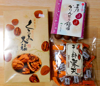 くるみ大福、かりんとう饅頭、干し柿寒天。