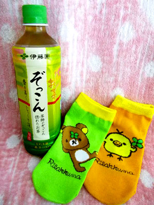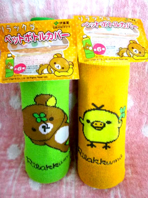 リラックマの靴下みたいな可愛いペットボトルカバー付きのお茶emoji