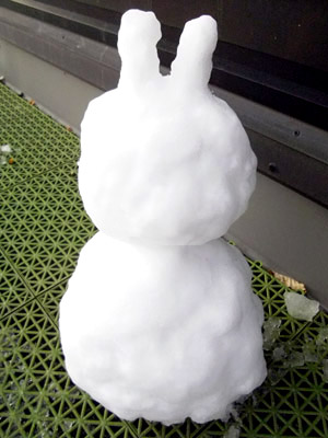 ベランダに積もってた雪で、今年はコニーちゃんの雪像を