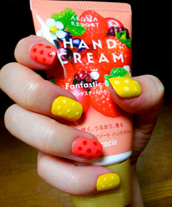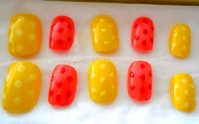 艶々なキャンディーカラー+水玉柄のポップネイル