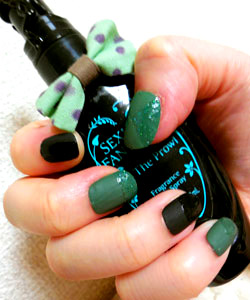 ちょっと大人っぽい深緑と黒の、マットなシンプルネイル
