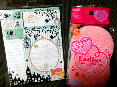 レターセット、ボディスポンジ、除光液などの他、マスカラ、チーク、