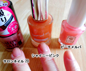 (100円の2つは私にはどう見ても自爪以上のピンクには見えません^^;)