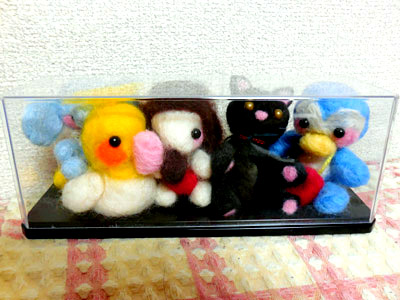 羊毛フェルト達を入れてみたら、ちょっと狭過ぎてギュウギュウw