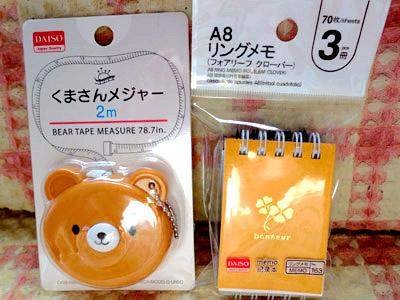 くまさんメジャーと、小さいリングメモ。