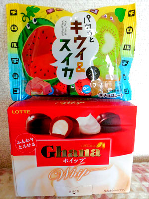 パカッとキウイ&スイカのチロルチョコ と Ghana ホイップ。