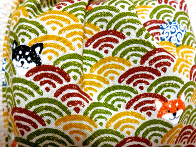 巾着の生地、よく見たらワンコが隠れてる~~可愛い!