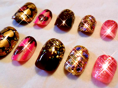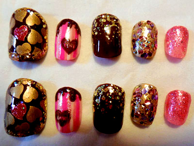 テーマは 『チョコ×ピンク』。でもゴールドやラメを多用したら