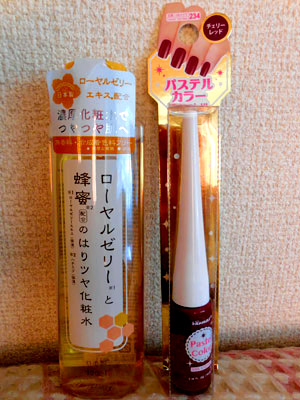 ローヤルゼリーの化粧水と、やたら持つところ(蓋)が長いマニキュアw