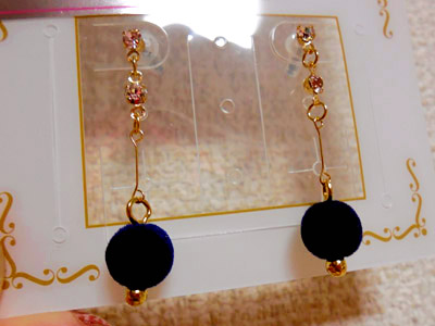 母が買ってきてくれた、ネイビーのマリモwみたいなピアス。