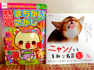 まちマガVol.22と、可愛いにゃんこの写真と名言が書いてある本。